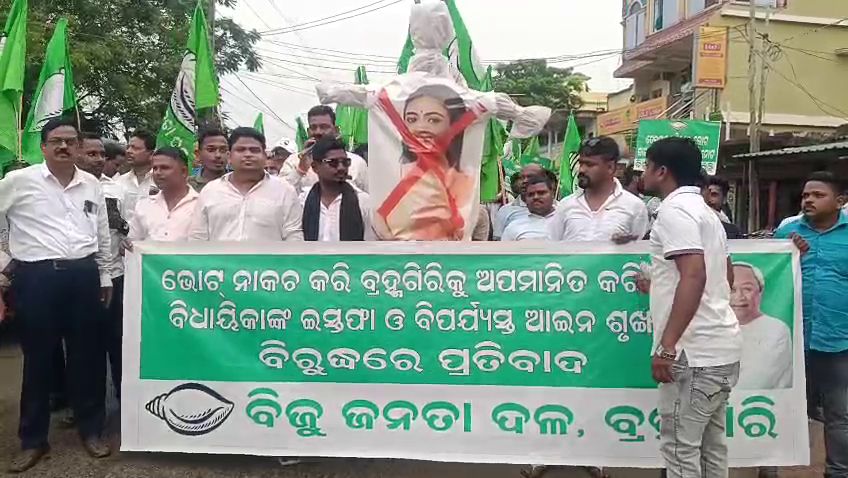 ବ୍ରହ୍ମଗିରିରେ ବିଜେଡିର ବିଶାଳ ରାଲି ଏଵଂ ବିଧାୟିକାଙ୍କ କୁଶପୁତ୍ତଳିକା ଦାହ