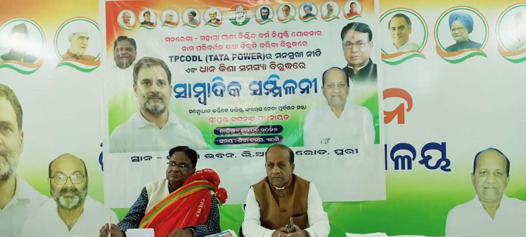 ପୁରୀ : ପୁରୀ ଜିଲ୍ଲା କଂଗ୍ରେସ କାର୍ଯ୍ୟାଳୟ ଠାରେ ପୁରୀ ଜିଲ୍ଲା କଂଗ୍ରେସ କମିଟି ତରଫରୁ ଶନିବାରଦିନ ଏକ ସାମ୍ବାଦିକ ସମ୍ମିଳନୀ ଅନୁଷ୍ଠିତ ହୋଇଯାଇଛି । ଏହି ସାମ୍ବାଦିକ ସମ୍ମିଳନୀକୁ ପୂର୍ବତନ ମନ୍ତ୍ରୀ ଏବଂ ବରିଷ୍ଠ କଂଗ୍ରେସ ନେତା ଶ୍ରୀଯୁକ୍ତ ଜଗନ୍ନାଥ ପଟ୍ଟନାୟକ ସମ୍ବୋଧିତ କରିଥିଲେ। ବିଶେଷତଃ ତିନୋଟି ବିଷୟ ଉପରେ ସେ ଆଲୋକପାତ କରିଥିଲେ, ପ୍ରଥମତଃ ସେ ମହାତ୍ମାଗାନ୍ଧୀ ଗ୍ରାମିଣ ନିଶ୍ଚିତ କର୍ମ ନିଯୁକ୍ତି ଯୋଜନା ର ନାମ ଏବଂ ସଂପୂର୍ଣ୍ଣ ରୂପରେଖ ପରିବର୍ତ୍ତନ କୁ ନିନ୍ଦା କରିଥିଲେ । ସେ କହିଥିଲେ ସ୍ପଷ୍ଟ ଦିବାଲୋକରେ ମନରେଗା ଆଇନ ର ହତ୍ୟା ସେ ଆହୁରି ମଧ୍ୟ କହିଥିଲେ ଭିବି-ଜୀ-ରାମଜୀ ଆଇନ ହେଉଛି କୋଟି କୋଟି ଶ୍ରମିକଙ୍କ ଅଧିକାର ଉପରେ ଡକାୟତି, ମେହନତି ଲୋକଙ୍କର ପେଟରେ ଲାତ ଏବଂ ଗରିବ ମାନଙ୍କର କାମ ମାଗିବାର ଅଧିକାରକୁ ଛଡ଼ାଇନିଆଯାଇଛି, ଏସ.ସି.ଏସ.ଟି ଓବିଶି ସମାଜର ମନରେଗା ଶ୍ରମିକମାନଙ୍କୁ ସାମାଜିକ ନ୍ୟାୟରୁ ବଞ୍ଚିତ କରିବାର ଚକ୍ରାନ୍ତ । ଏହା ନାଥୁରାମ ଗୋଡସେଙ୍କ ଅନୁଗାମୀ ମାନଙ୍କ ଦ୍ଵାରା ଗାନ୍ଧୀଙ୍କ ଗ୍ରାମୀଣ ଭାରତ ଦର୍ଶନକୁ ଧ୍ବଂସ କରିବାର ଏକ ଷଡ଼ଯନ୍ତ୍ର । ଯାହାକି ଶ୍ରମିକ ଏବଂ କୃଷକମାନଙ୍କ ମଧ୍ୟରେ ବିବେଧତା ସୃଷ୍ଟି କରୁଛି ।