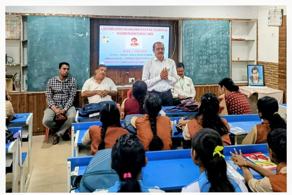 ପୁରୀ : ପୁରୀ ଜିଲ୍ଲା ଶିକ୍ଷା ବିଭାଗ ଆନୁକୂଲ୍ୟରେ ସ୍ଥାନୀୟ ପୋଲିସ ସଂଯୁକ୍ତ ଉଚ୍ଚ ବିଦ୍ୟାଳୟ ,ପୁରୀ ପରିସରରେ ଜାତୀୟ ଗଣିତ ଦିବସ ପାଳିତ ହୋଇଯାଇଛି। ଜିଲ୍ଲା ବିଜ୍ଞାନ ନିରୀକ୍ଷକ ଶ୍ରୀକୁମାର ଆଚାର୍ଯ୍ୟଙ୍କ ପ୍ରତ୍ୟକ୍ଷ ତତ୍ତ୍ଵାବଧାନରେ ବିଭିନ୍ନ ଛାତ୍ରଛାତ୍ରୀଙ୍କୁ ନେଇ ଗାଣିତିକ ଚର୍ଚ୍ଚା ଅନୁଷ୍ଠିତ ହୋଇଯାଇଛି। ପୋଲିସ ସଂଯୁକ୍ତ ଉଚ୍ଚ ବିଦ୍ୟାଳୟର ପ୍ରଧାନଶିକ୍ଷକ ଶିବରାମ ମିଶ୍ରଙ୍କ ଦ୍ଵାରା କାର୍ଯ୍ୟକ୍ରମ ଉଦଘାଟିତ ହୋଇଯାଇଛି।