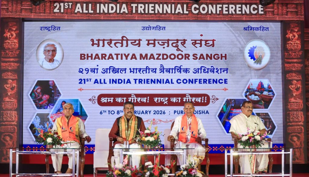 ପୁରୀ : ଭାରତୀୟ ମଜଦୁର ସଂଘ (ବିଏମଏସ) ର ତିନିଦିନିଆ ତ୍ରୈବାର୍ଷିକ ଅଧିବେଶନର ଦ୍ୱିତୀୟ ଦିନ ଦୁଇଟି ଗୁରୁତ୍ୱପୂର୍ଣ୍ଣ ସତ୍ର ଅନୁଷ୍ଠିତ ହୋଇଯାଇଛି। ପ୍ରଥମ ସତ୍ରରେ କେନ୍ଦ୍ରୀୟ ଶିକ୍ଷାମନ୍ତ୍ରୀ ଧର୍ମେନ୍ଦ୍ର ପ୍ରଧାନ କହିଛନ୍ତି ଯେ, “ବିଏମଏସ ସଦା ଶ୍ରମିକ ହିତ ସହିତ ରାଷ୍ଟ୍ରହିତକୁ ସର୍ବୋପରି ରଖିଆସିଛି।”ଓମ ପ୍ରକାଶ ଅଗ୍ଗୀ ସଭାଗୃହରେ ଆୟୋଜିତ ଏହି ସତ୍ରକୁ ସମ୍ବୋଧନ କରି ଶ୍ରୀ ପ୍ରଧାନ କହିଥିଲେ ଯେ ସେ ନିଜେ ମଧ୍ୟ ବିଏମଏସର ଜଣେ କାର୍ଯ୍ୟକର୍ତ୍ତା ଥିଲେ ଏବଂ ଏହି ସଂଗଠନ ଦେଶକୁ ବୈଚାରିକ ଭାବେ ସୁଦୃଢ଼ କରିବାରେ ଗୁରୁତ୍ୱପୂର୍ଣ୍ଣ ଭୂମିକା ନିଭାଇଛି। ସଂଗଠିତ, ପ୍ରଶିକ୍ଷିତ ଓ ସଚେତନ ଶ୍ରମିକଶକ୍ତି ହିଁ ଭାରତର ପ୍ରଗତିର ମୂଳ ଆଧାର ବୋଲି ସେ ମତ ପ୍ରକାଶ କରିଥିଲେ।ବଦଳୁଥିବା ଶିଳ୍ପ, ପ୍ରଯୁକ୍ତିକ ଓ ଆର୍ଥିକ ପରିବେଶରେ ଶ୍ରମିକମାନଙ୍କ ସ୍କିଲ ଉନ୍ନତି, ସାମାଜିକ ସୁରକ୍ଷା ଓ ସମ୍ମାନଜନକ କାର୍ଯ୍ୟ ପରିବେଶ ଉପରେ ଜୋର ଦେଇ ସେ କହିଥିଲେ ଯେ ଆତ୍ମନିର୍ଭର ଓ ବିକଶିତ ଭାରତ ଗଢ଼ିବାରେ ଶ୍ରମିକ ଶକ୍ତିର ଭୂମିକା ଅପାର। ଶ୍ରମଶକ୍ତିର ଭାଗିଦାରିକୁ ୫୦ କୋଟିରୁ ୭୫ କୋଟିକୁ ବଢ଼ାଇବା ଓ ସ୍କିଲ-ରିସ୍କିଲ ଉପରେ ଗୁରୁତ୍ୱ ଦେବାର ଆହ୍ୱାନ ସେ ଦେଇଥିଲେ। ଏହି ସତ୍ରରେ ଆରଏସଏସ କାର୍ଯ୍ୟକାରିଣୀ ସଦସ୍ୟ ବି. ଭାଗୟ୍ୟା କହିଥିଲେ ଯେ ରାଷ୍ଟ୍ରକୁ ମା’ ଭାବରେ ଦେଖିବା ଓ ଦେଶ, ପରିବାର ଓ ସମାଜ ପ୍ରତି ଭାବନା ରଖିବା ଅତ୍ୟନ୍ତ ଆବଶ୍ୟକ। ଏହି ଅବସରରେ ବିଏମଏସର ଅଖିଳ ଭାରତୀୟ ଅଧ୍ୟକ୍ଷ ହିରଣ୍ମୟ ପାଣ୍ଡ୍ୟା ଓ ମହାମନ୍ତ୍ରୀ ରବିନ୍ଦ୍ର ହିମତେ ଉପସ୍ଥିତ ଥିଲେ।
