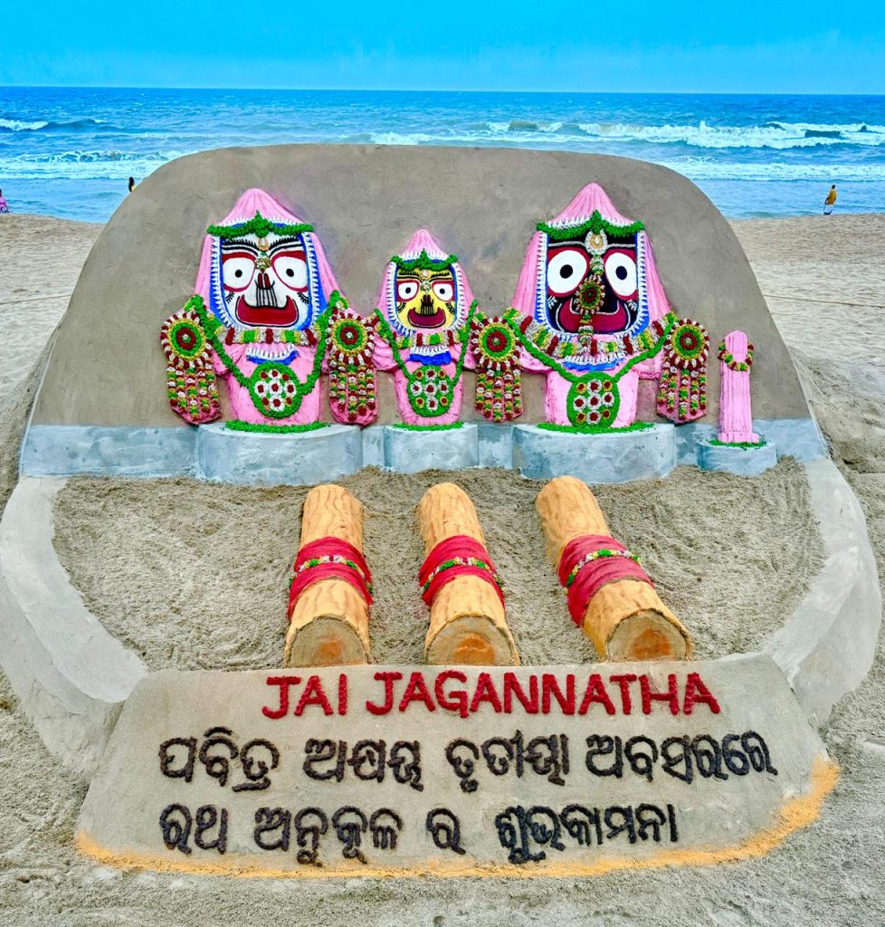 ପୁରୀ : ପବିତ୍ର ଅକ୍ଷୟ ତୃତୀୟା ଅବସରରେ, ପ୍ରସିଦ୍ଧ ବାଲୁକା ଶିଳ୍ପୀ ଏବଂ ପଦ୍ମଶ୍ରୀ ପୁରସ୍କାର ପ୍ରାପ୍ତ ସୁଦର୍ଶନ ପଟ୍ଟନାୟକ ପୁରୀ ସମୁଦ୍ରତଟ, ଓଡିଶାରେ ଏକ ସୁନ୍ଦର ବାଲୁକା ଶିଳ୍ପ ସୃଷ୍ଟି କରି ଏହି କଳାକୃତି ମାଧ୍ୟମରେ ସମସ୍ତଙ୍କୁ ଅନ୍ତରିକ ଶୁଭେଚ୍ଛା ଓ ଶୁଭକାମନା ଜଣାଇଛନ୍ତି। ଓଡିଶାରେ ଅକ୍ଷୟ ତୃତୀୟାର ଗଭୀର ସାଂସ୍କୃତିକ ଓ ଆଧ୍ୟାତ୍ମିକ ମହତ୍ତ୍ୱ ରହିଛି, କାରଣ ଏହି ଦିନରୁ ରଥ ଅନୁକୂଳ ବାର୍ଷିକ ରଥଯାତ୍ରା ପାଇଁ ରଥ ନିର୍ମାଣର ଆରମ୍ଭ ଶୁଭାରମ୍ଭ ହୁଏ। ଏହି କଳାତ୍ମକ ଉପସ୍ଥାପନା ମାଧ୍ୟମରେ ଏହି ଅଞ୍ଚଳର ସମୃଦ୍ଧ ପାରମ୍ପରିକତା, ଭକ୍ତି ଓ ସାଂସ୍କୃତିକ ଗୌରବକୁ ସଜୀବ ଭାବରେ ପ୍ରକାଶ କରାଯାଇଛି।